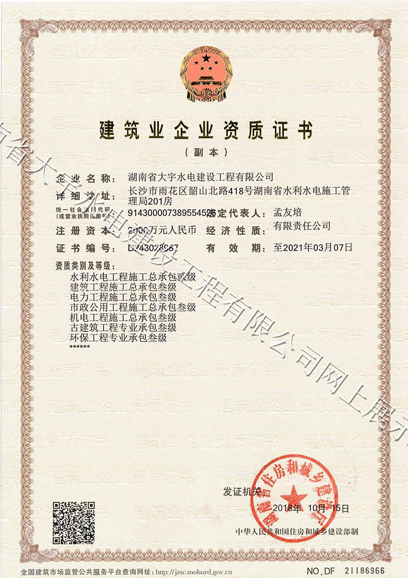 建筑业企业资质证书