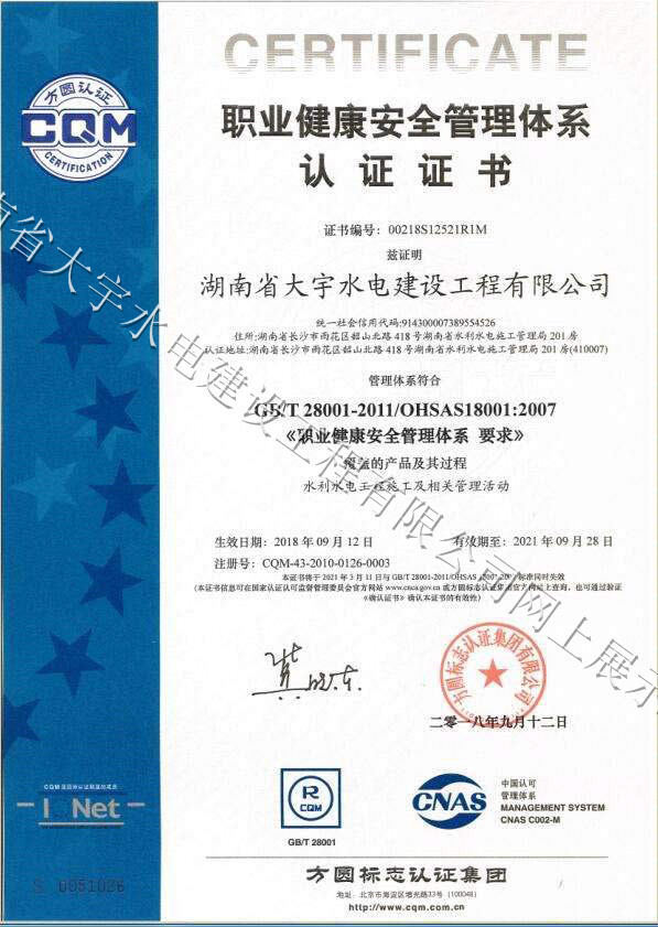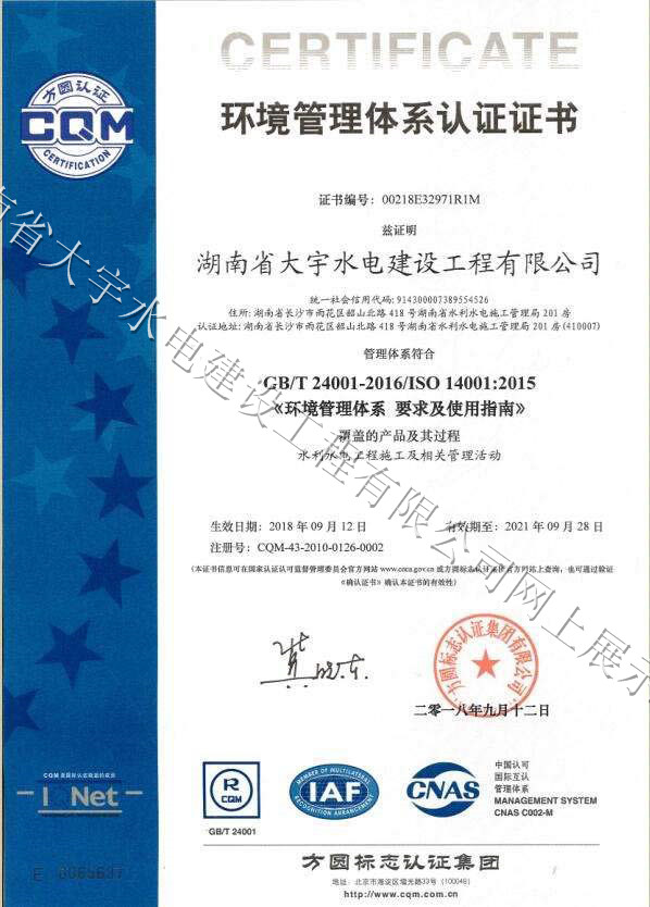 质量管理体系认证证书