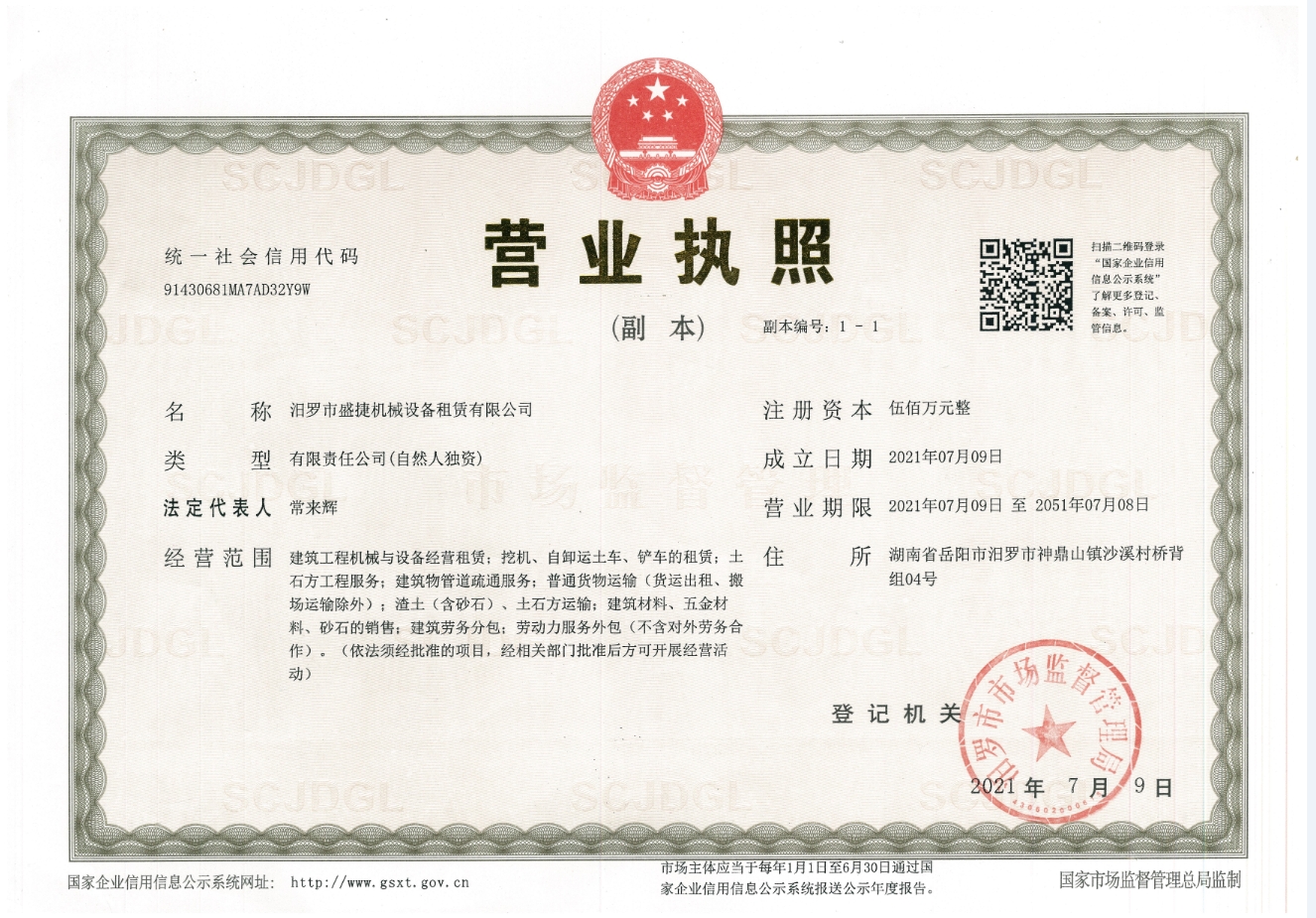 汨罗市盛捷机械设备租赁有限公司